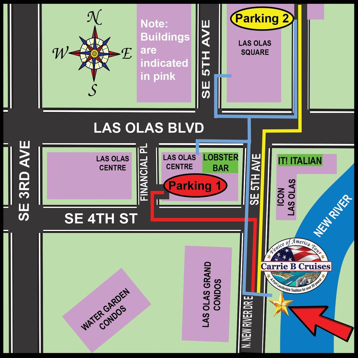 JUST OFF LAS OLAS BLVD (TURN SOUTH ON SE 5TH AVE... CARRIE B DOCK STRAIGHT AHEAD) + SEE MAP BELOW FOR PARKING DIRECTIONS + THANK YOU!